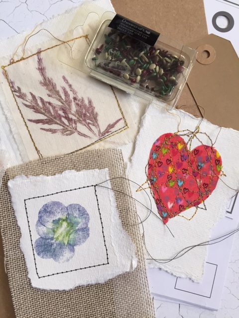 I’ve also been playing with ‘Hapa Zome’ and printing flowers! This is addictive so be warned! I wanted to use these images with textiles and mixed media so bought a sewing machine yesterday – it’s ages since I had one and I’ve only had a quick play . I’m hoping to make cards and gift tags to begin with.
