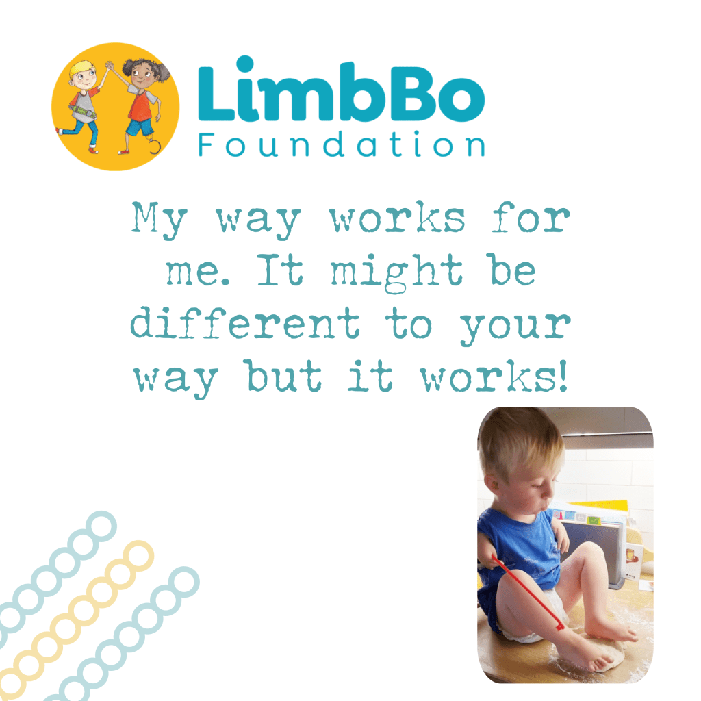 Yesterday I saw a video from Theo’s mum, he has 2 limb different arms and was flattening pizza dough with his feet with a proper big smile on his face. This is the norm for our children, this ‘can do’ attitude is a recurring theme on our parents’ page ‘no limits’ and ‘I can do it …’ seems to be their mantra. These key rings are my way of showing that giving them a hand doesn’t ever mean doing it for them it just means enabling them to do things for themselves. Our adventure day this summer is on the 25th August, last year 256 people attended (50 of these were limb different children) there was lots of laughter and lots of tears – but these were tears of joy and pride from the adults watching our amazing children. Have a look at our website and YouTube channel to see what an amazing family Team LimbBo really is.