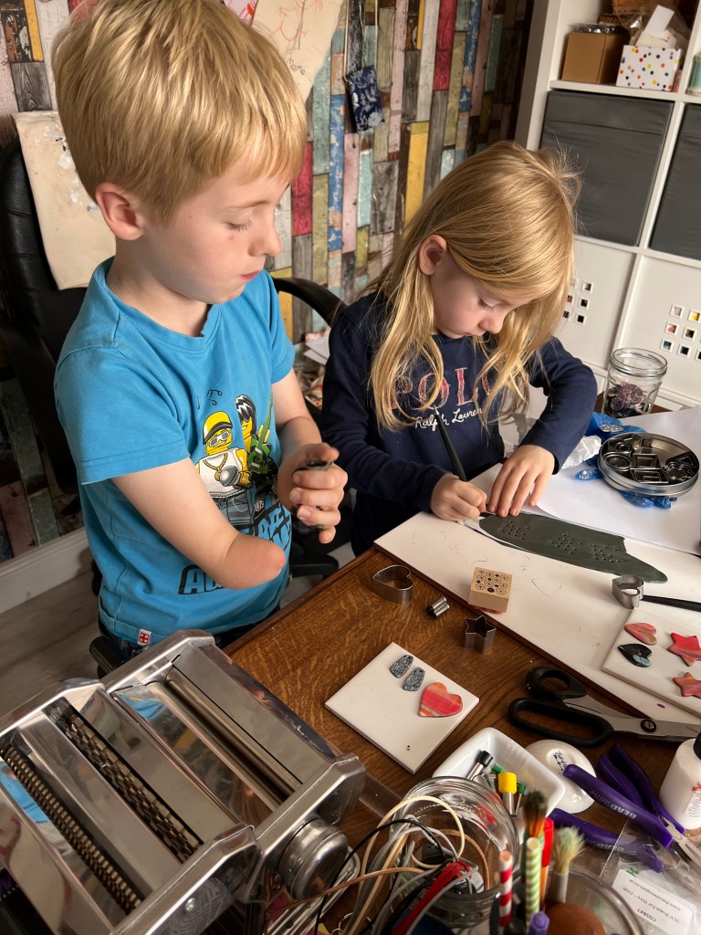 Tommy and Layla love ‘making stuff’ and have discovered my scrap box of polymer clay and often ask if they can make hearts and shapes. I love this new hobby and the fact that it’s allowing me to do something which is creative, useful and teaching my grandchildren new skills.