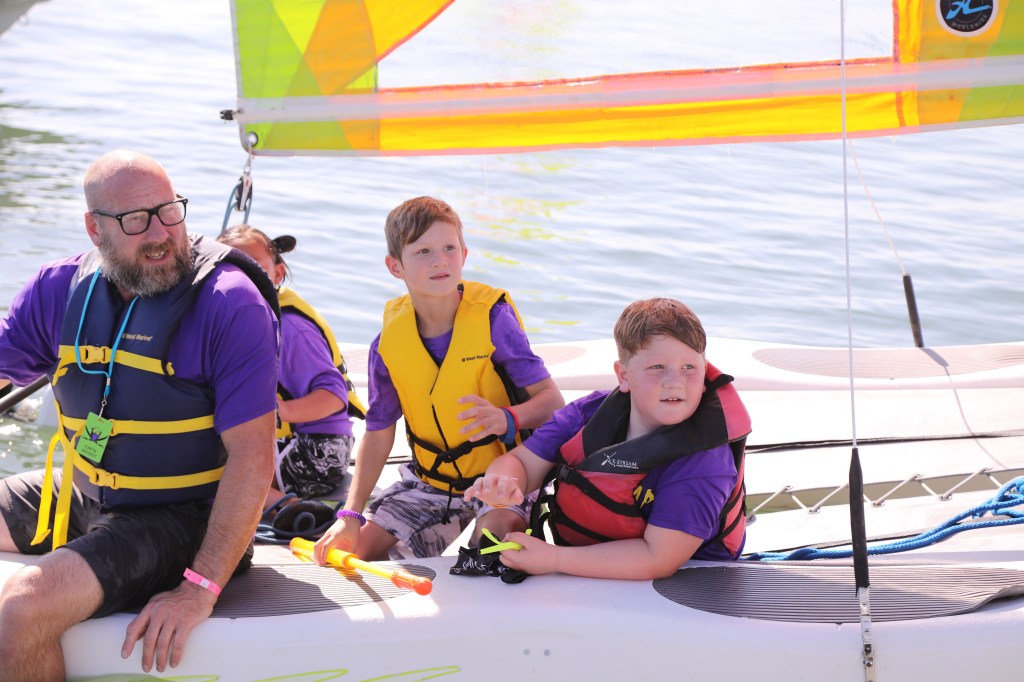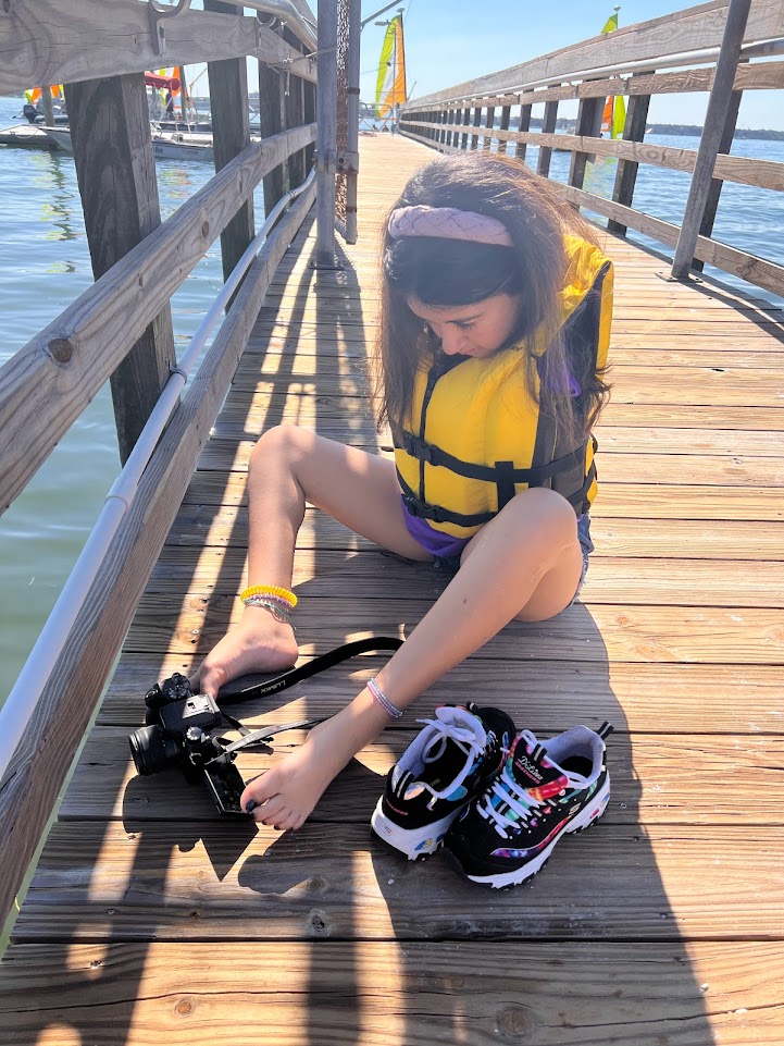 LJ loved sailing and created treasure chests, clay necklaces and several mermaid bags. They met friends from previous camps, they sailed, kayaked, were rescued from sailing too close to the pier, they hugged Linda and Michelle like the special adults and members of the family they now are.